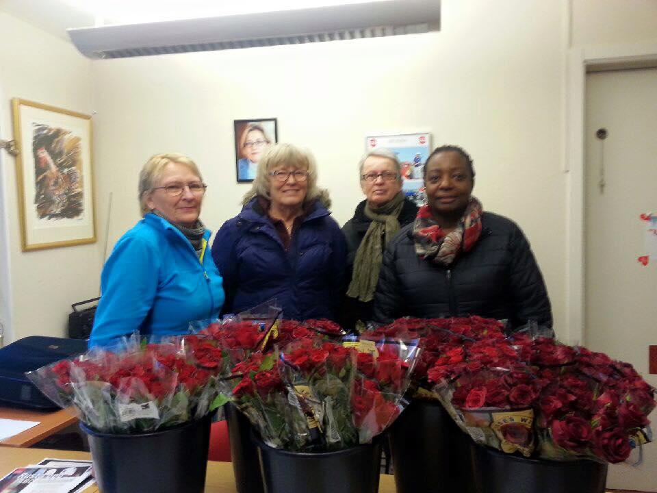 Idag är det internationella kvinnodagen och s-kvinnor i Bollnäs beger sig ut runt om i kommunen med sina röda rosor.